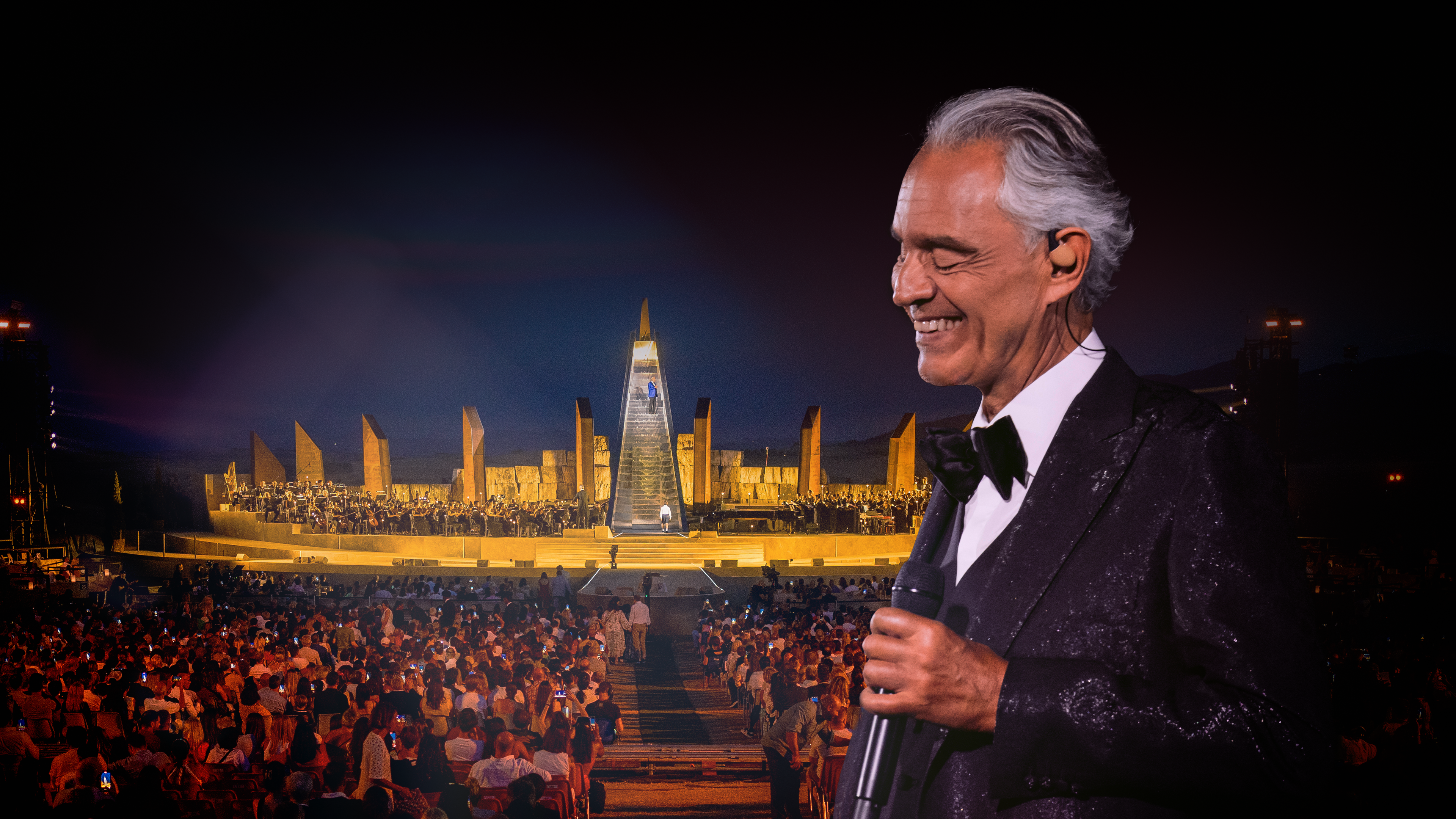 Den legendariske, italienske tenor Andrea Bocelli fejrer sit 30-årsjubilæum med en koncert i et toscansk amfiteater sammen med store stjerner.