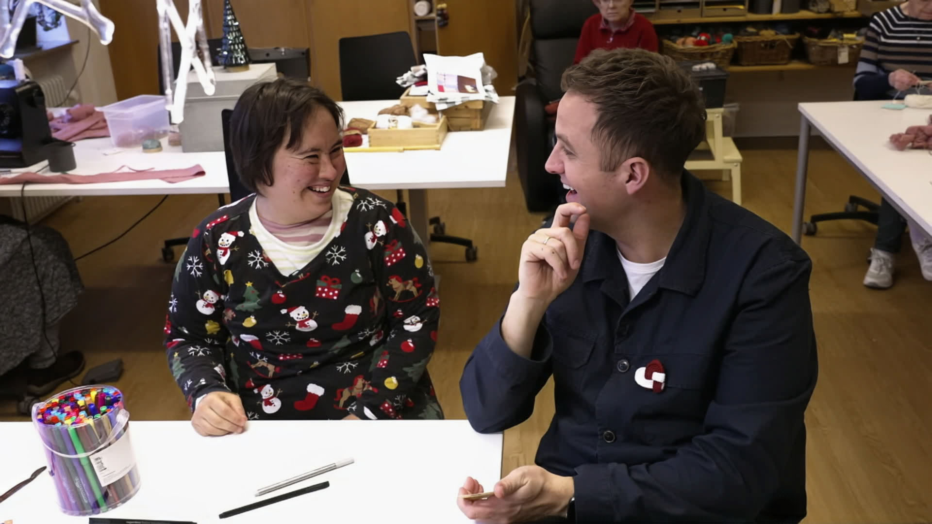 I foråret mødte vi voksne handicappede til koncert med Malte Ebert. Nu inviterer Rom Gamle Skole Anders Bro til julefrokost – her tror man på julemanden.