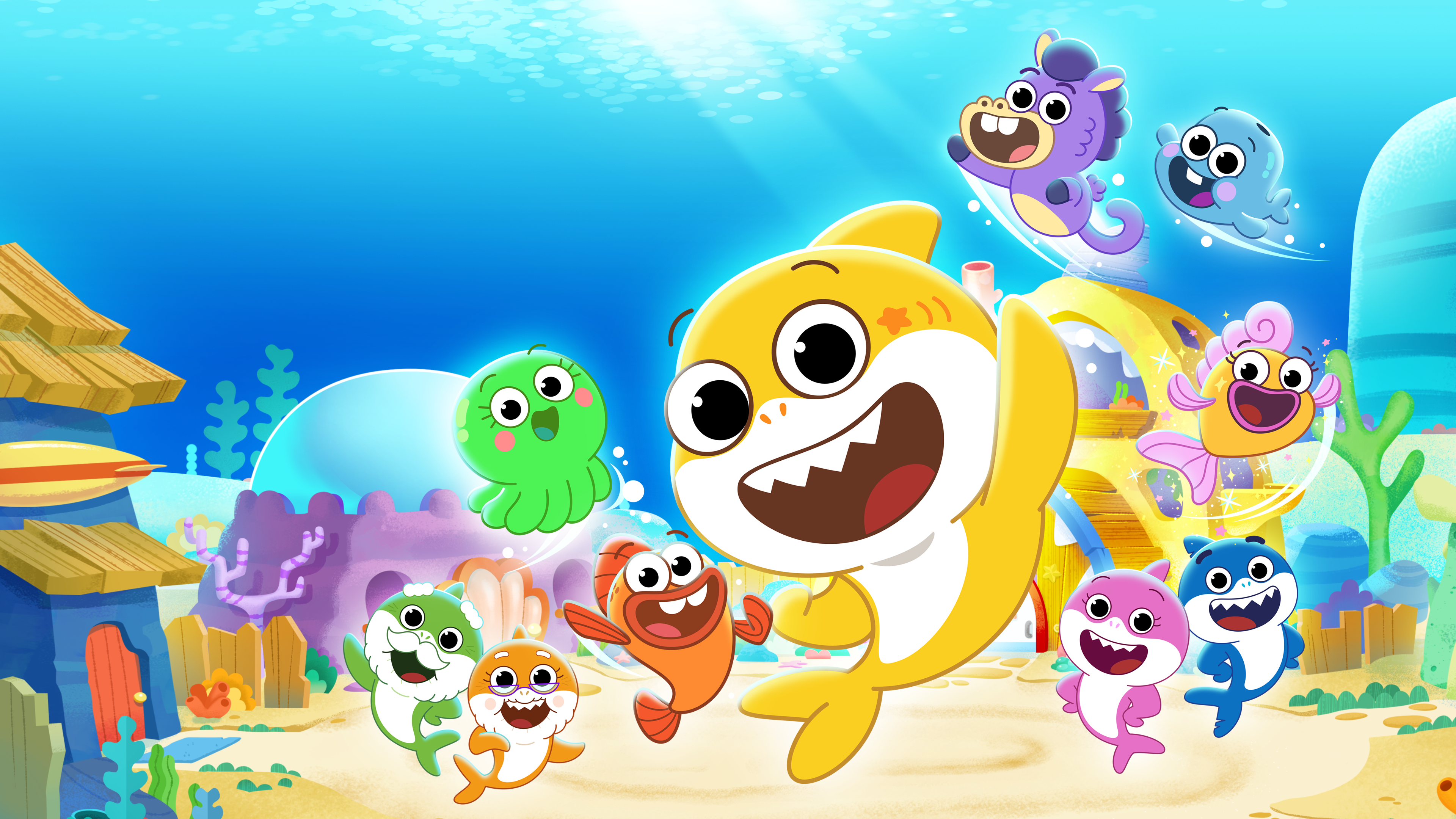 Baby og hans venner bygger et klubhus. Et støjende vandinsekt invaderer Shark-familiens hjem