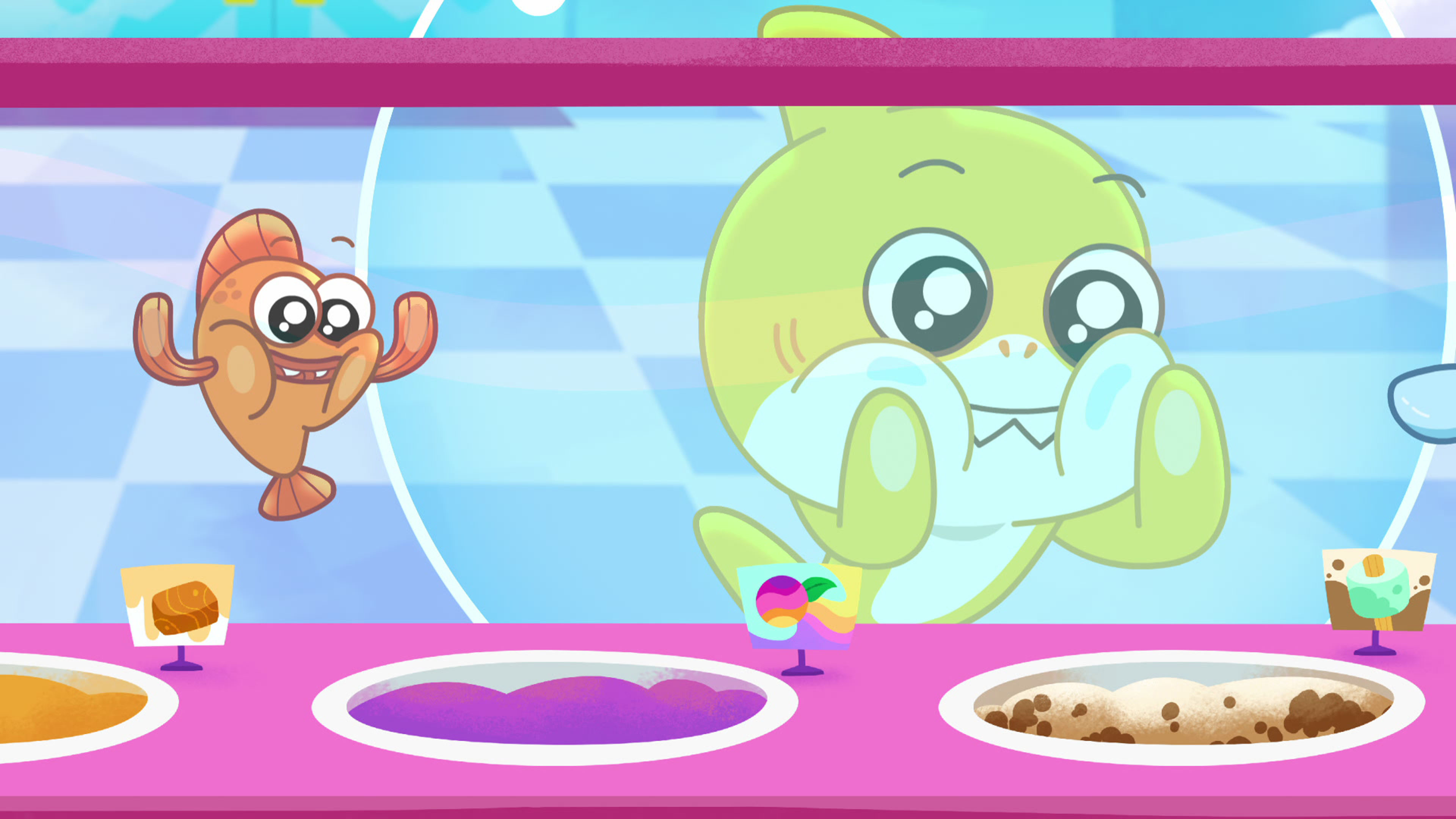 Brooklyn 'Baby' Shark og hans bedste ven, William Ray, har sjove eventyr sammen i Carnivore Cove.