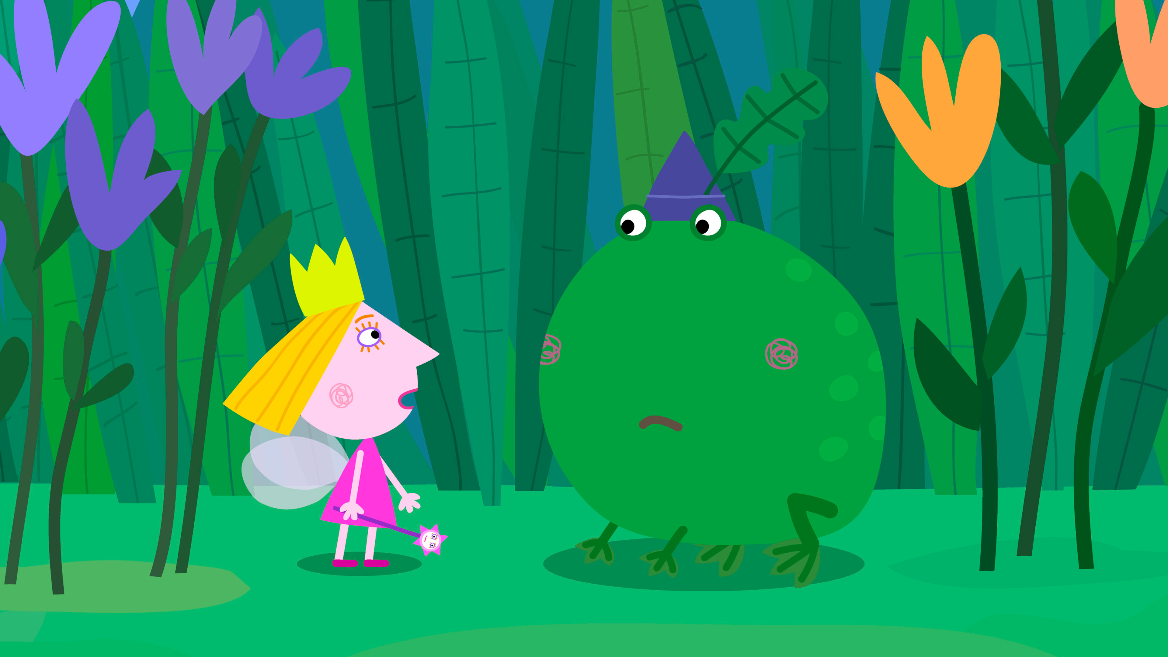 Holly kommer ved et uheld til at trylle Ben om til en frø. Ben hopper afsted mod søen. Holly kommer også til at forvandle Ben til en fugl og en kanin.