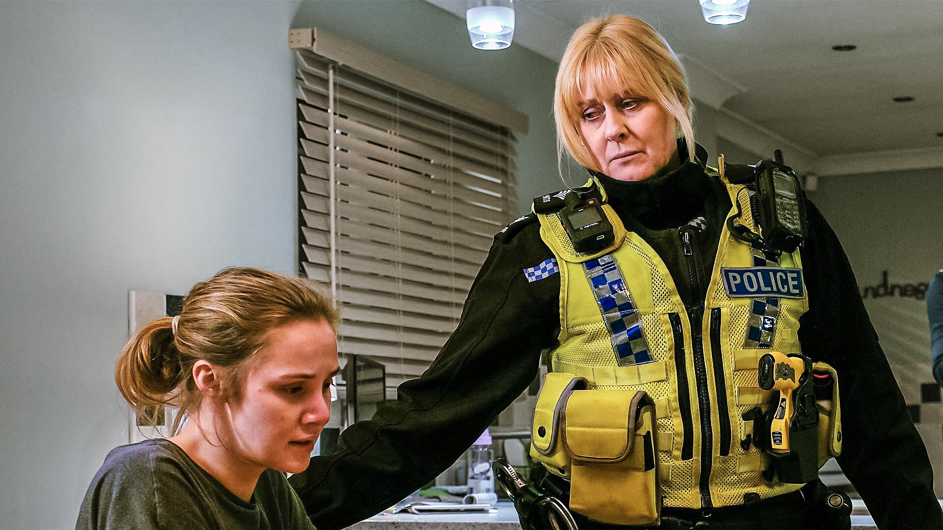Sarah Lancashire har hovedrollen som Catherine Cawood, en politibetjent i området med det ironiske navn 'Happy Valley' i Yorkshire.
