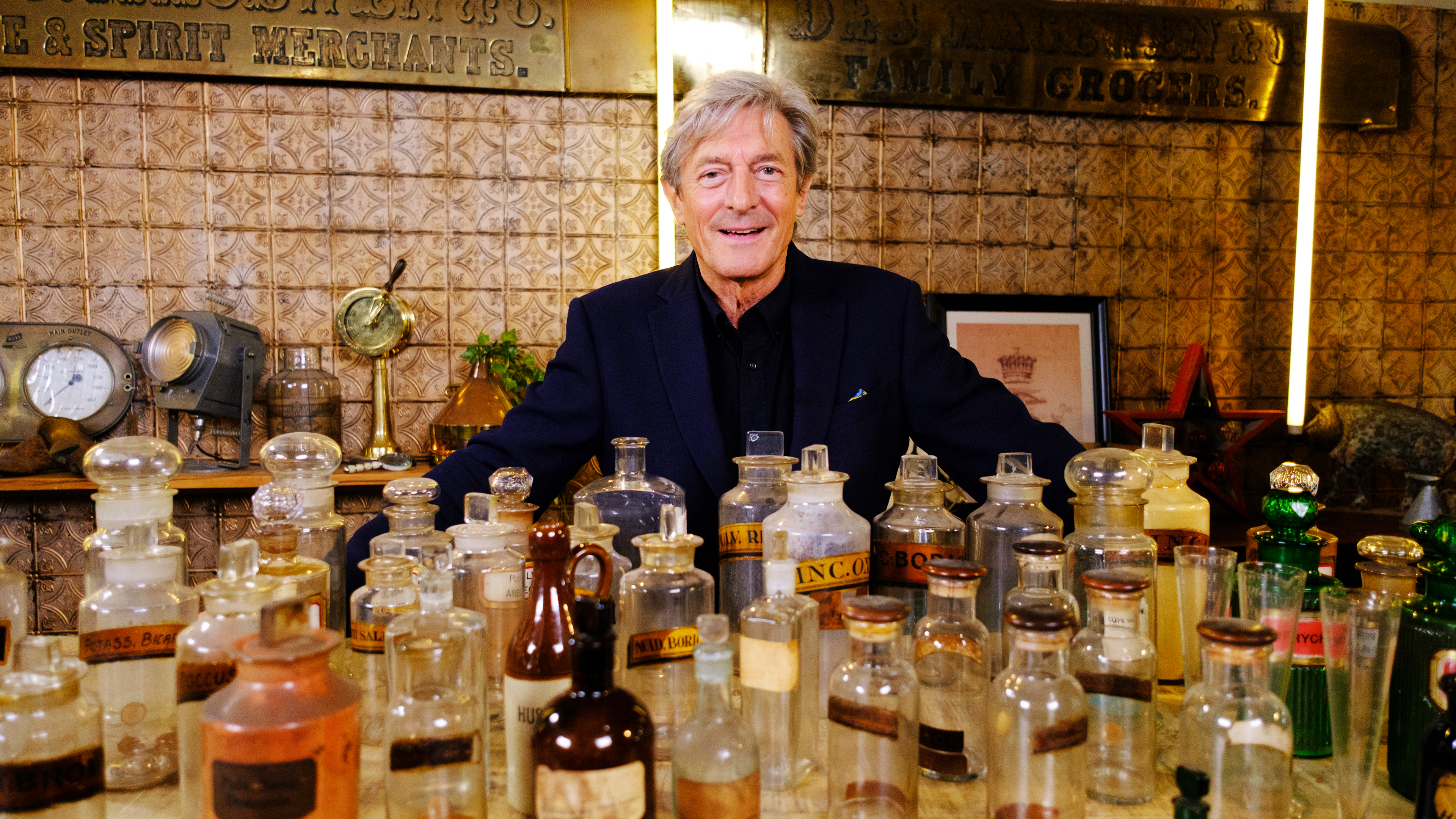 Nigel Havers er vært, når fem opkøbere slås om at få fingrene i en gammel smørkerne, et sæt apotekerflasker og en gasmåler fra 1940’erne.