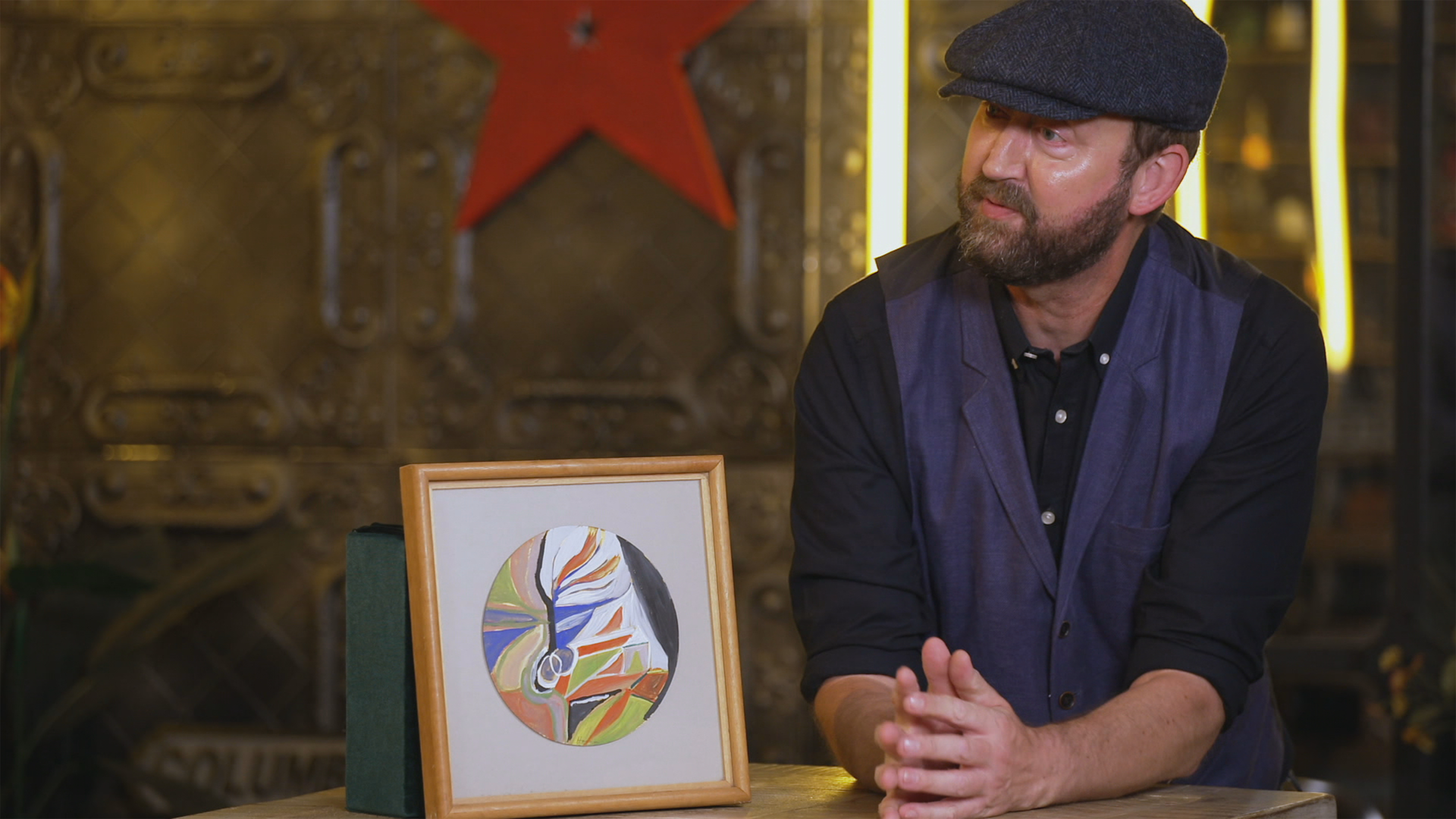 Nigel Havers præsenterer dagens fem forhandlere for en lastbildør, et spillekortsbord og en rugbytrøje fra en berømt film.
