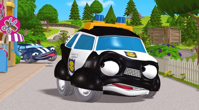 I Byens Helte møder vi politibilen Polle og brandbilen Betina, som hjælper med at holde den lille by tryg og rar.