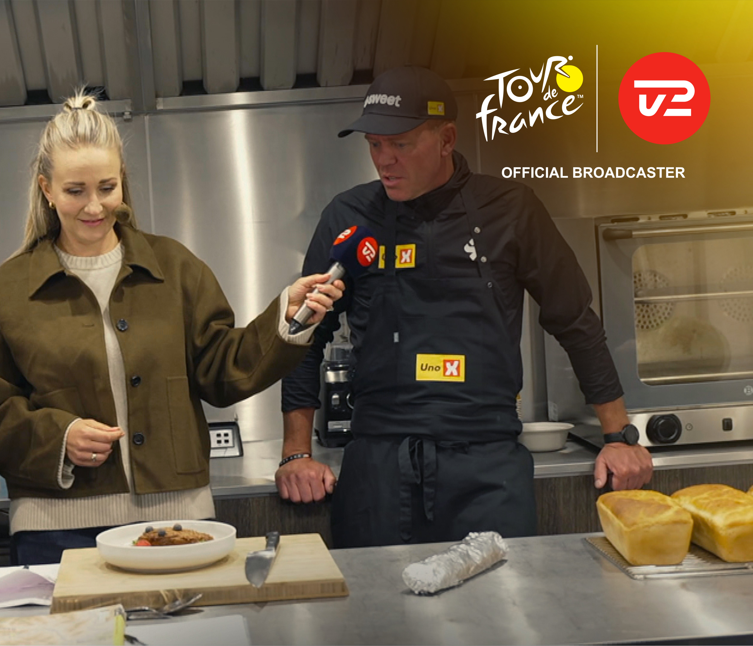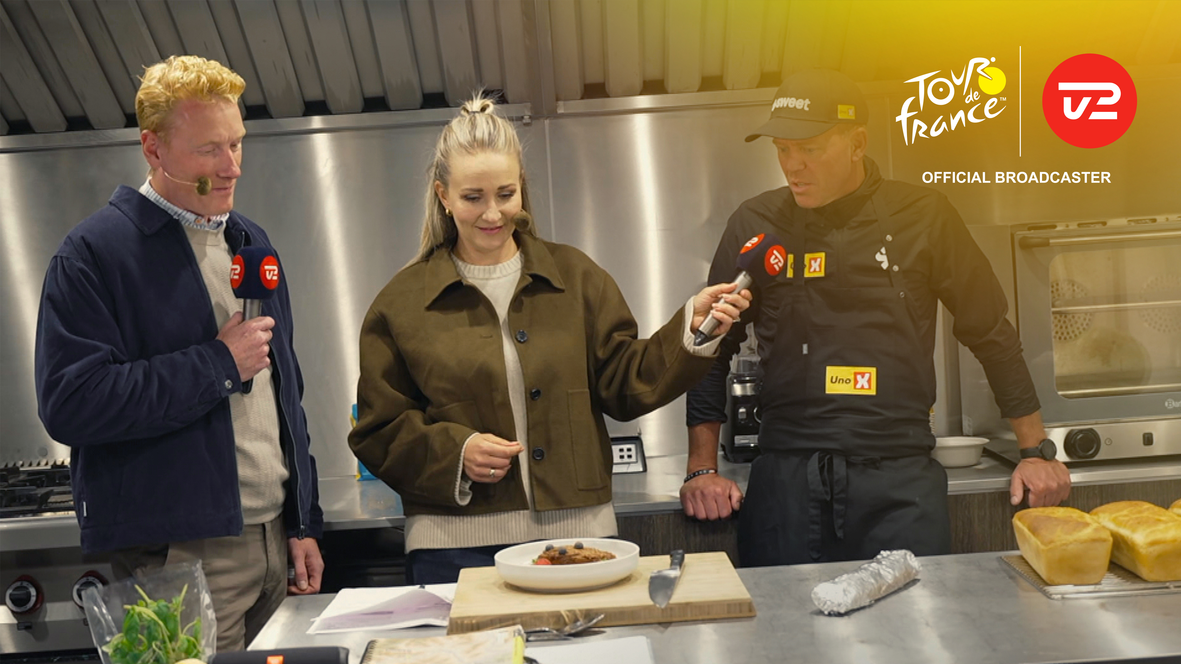Stine Bjerre Mortensen og Christian Moberg besøger kokken hos Uno-X Mobility, som viser, hvad rytterne får at spise i den sidste og opslidende uge af Touren