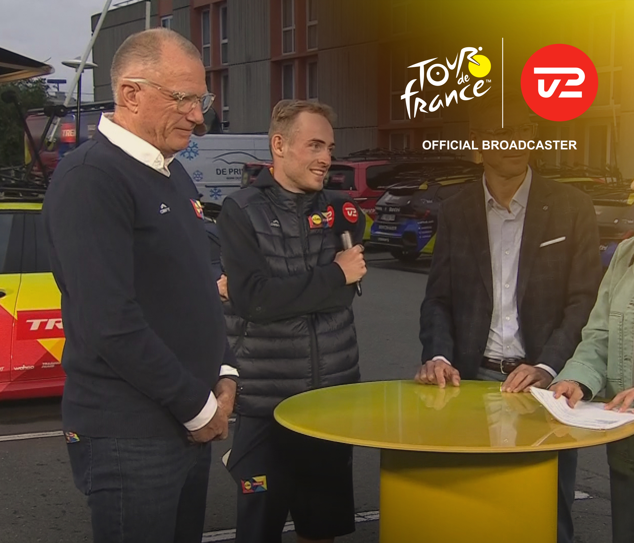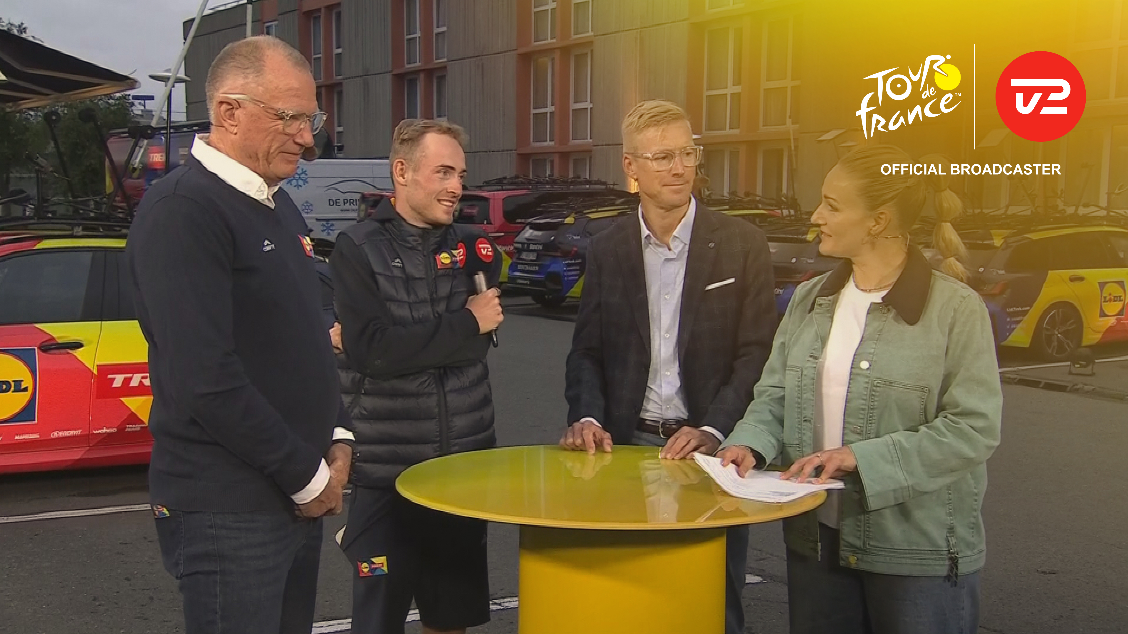 Tour-debutanten Tobias Lund fra Team Picnic PostNL er dagens gæst hos Stine Bjerre Mortensen og Lars Bak efter årets første etape