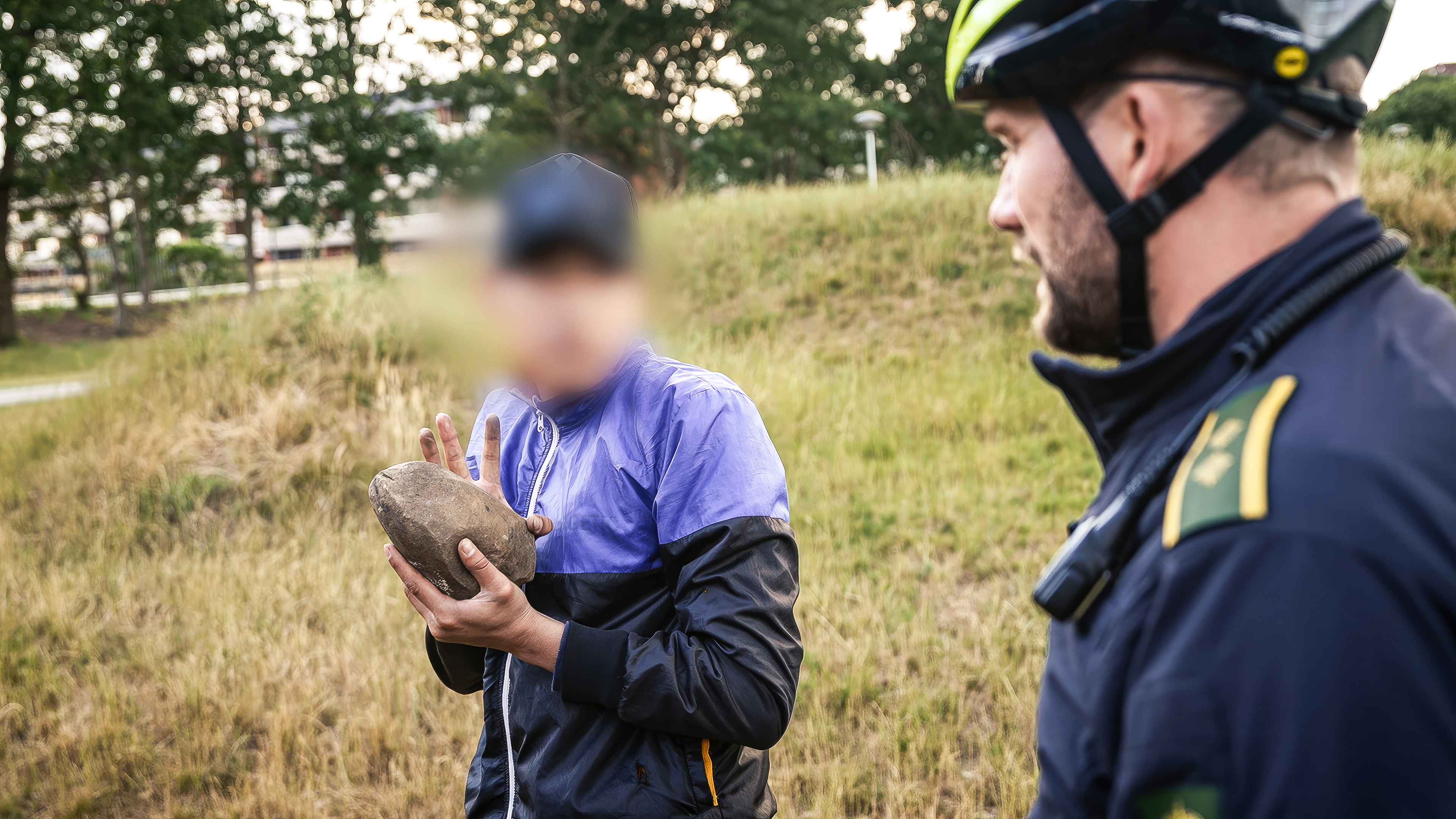 En beruset mand går rundt i Esbjerg med mistænkelige store sten i sin rygsæk, og betjentene Stefan og Flemming mistænker, at manden planlægger hærværk. .
