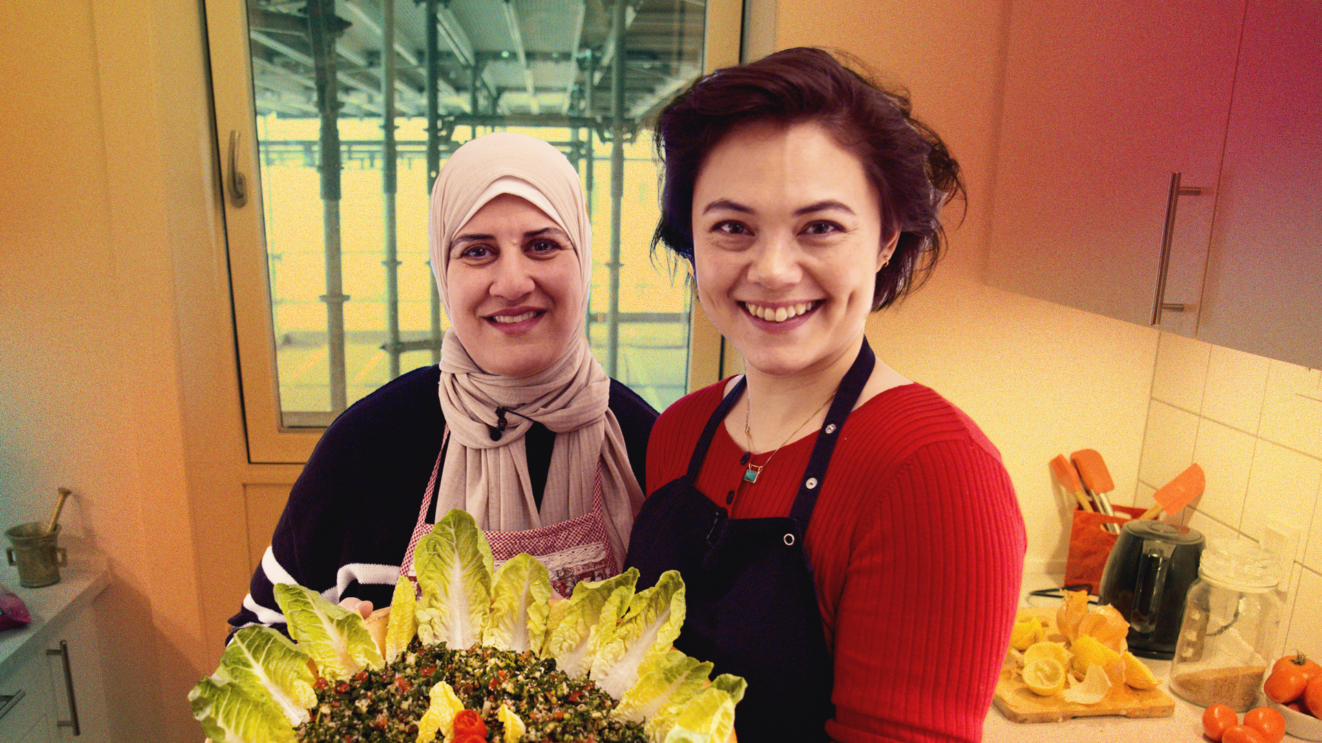 Ahlam, som er kurder fra Syrien, kan noget med kvæde og bygger en slange af auberginer.