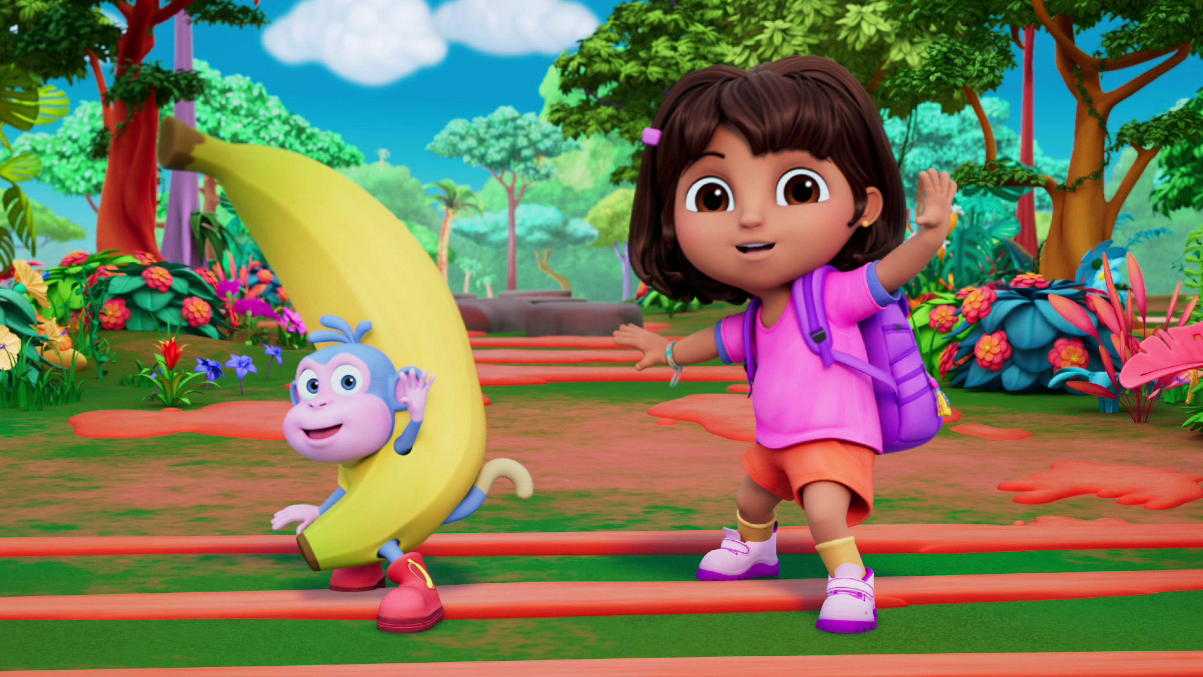 For at redde bananfesten må Dora forhindre guava-gejseren i at gå i udbrud. Gnavne gamle trold stikker af.
