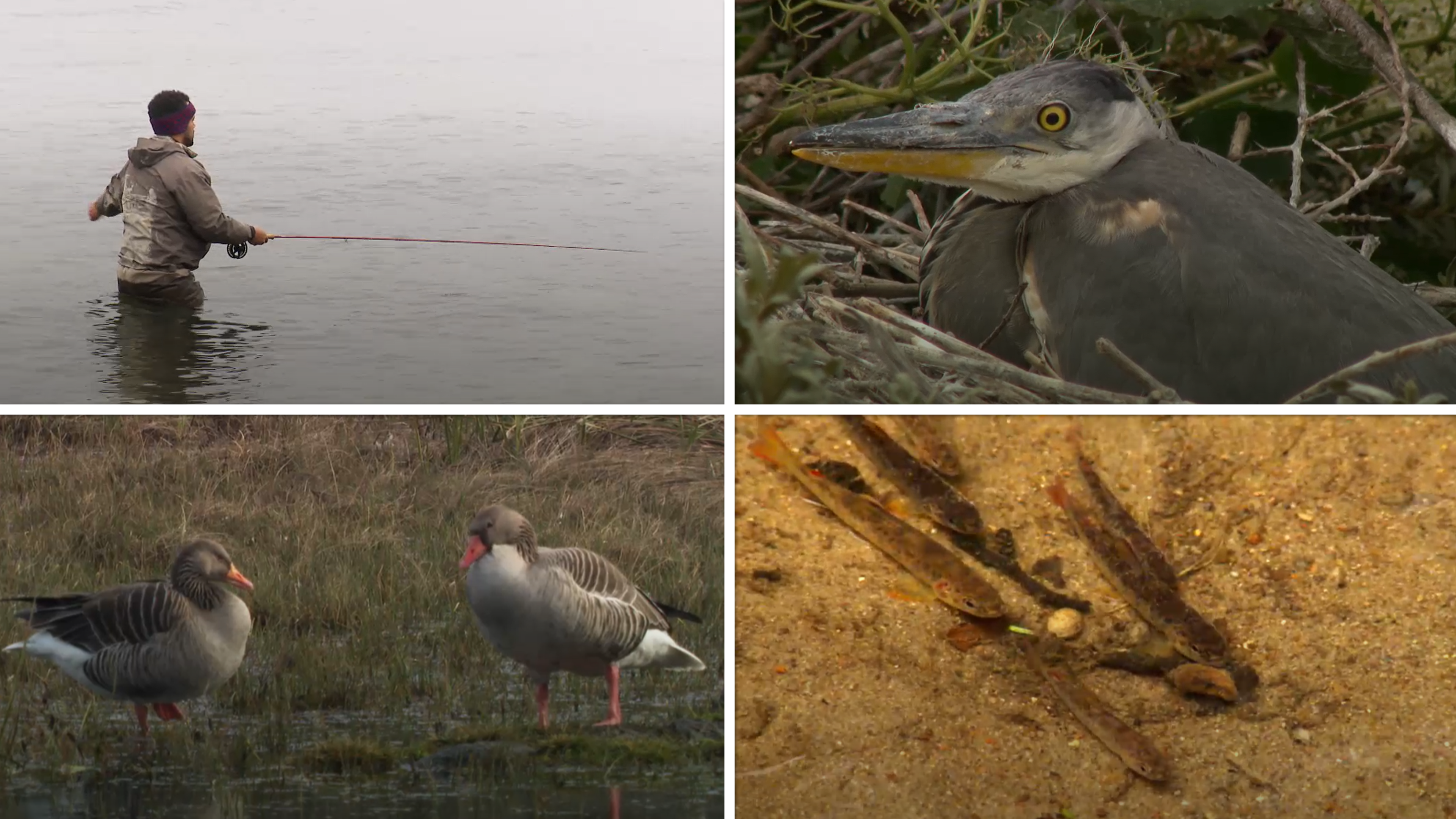 Lystfiskere fanger havørreder og hjælper ungerne på turen ud mod havet. Vi besøger fiskehejrekolonien i Rønne, og så kan du møde et par flotte mandarinænder.