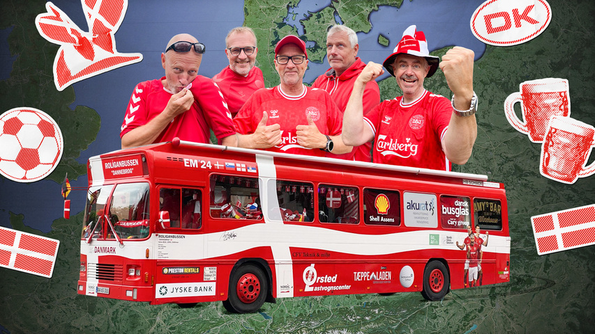 EM-bussen jagter danske sejre, fællesskab og gode fester til EM i fodbold i Tyskland.