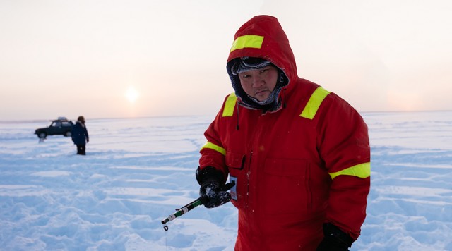 Simon vågner i verdens koldeste storby, Yakutsk, hvor de massive minusgrader får fiskene til at fryse, før krogen er ude af munden.