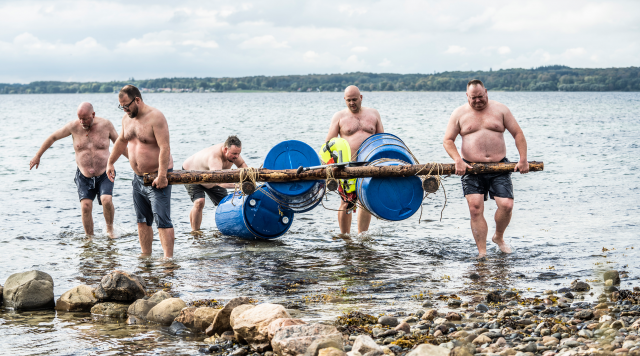 De fem fede kokke testes af deres træner, som må sande, at de er i meget dårlig form. Samtidig får de til opgave at bygge en tømmerflåde, men kan de samarbejde?.