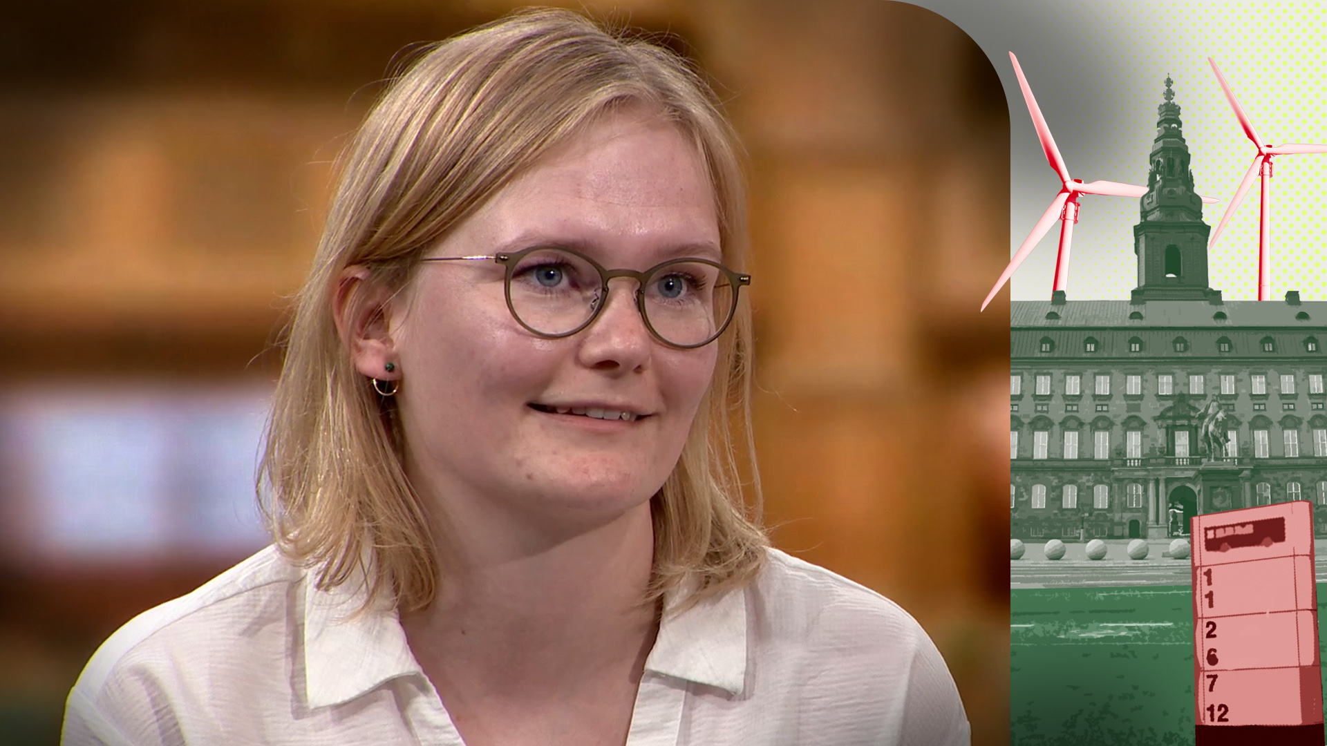 Heidi Bank (V) og vært Søren Jensen diskuterer havneudvidelsen i Aarhus og boligsituationen i de store byer.