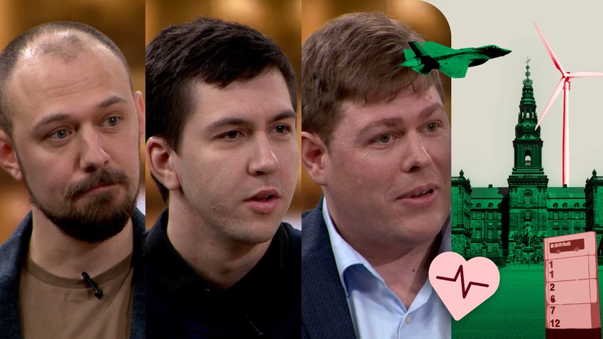 Tre debutanter til det kommende folketingsvalg besøger studiet og fortæller om deres holdninger til folkeskolen, formueskat og en fast Kattegatforbindelse.