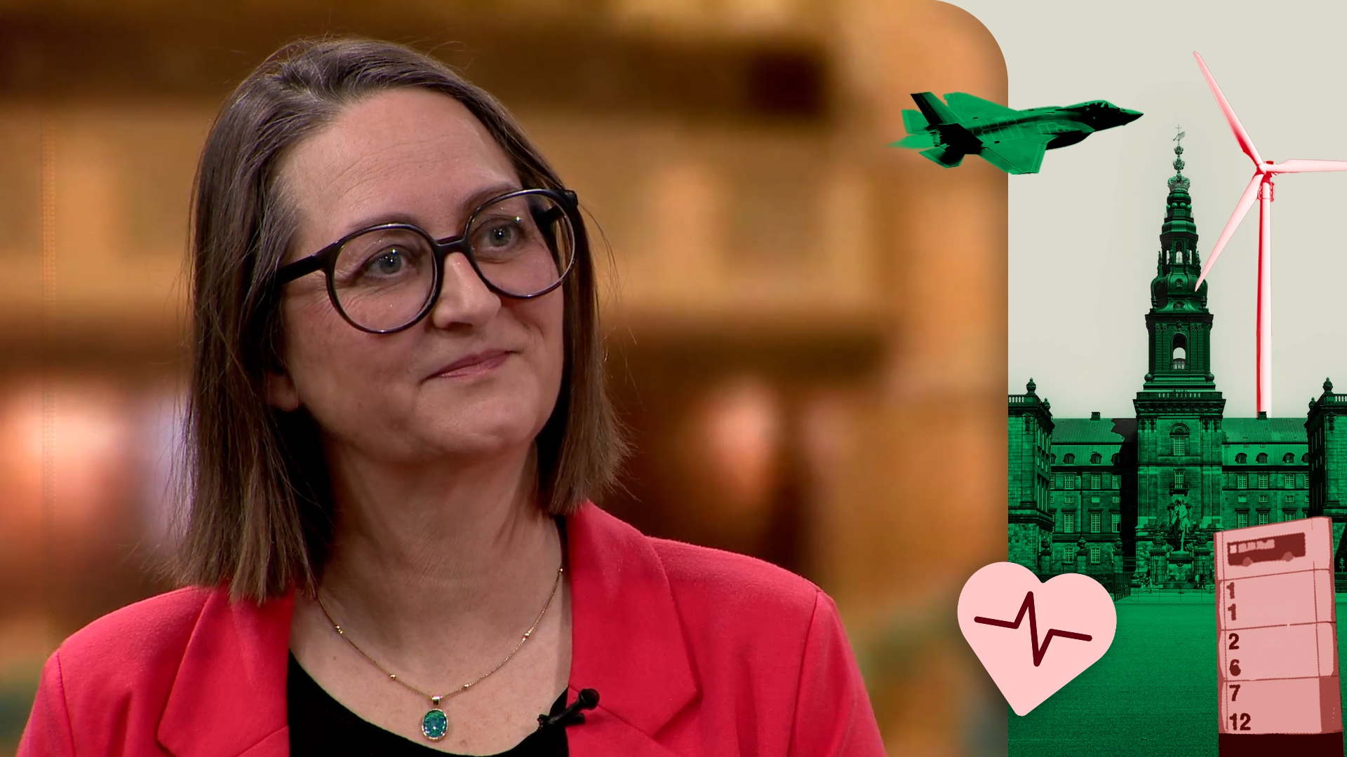 Heidi Bank (V) og vært Søren Jensen diskuterer havneudvidelsen i Aarhus og boligsituationen i de store byer.