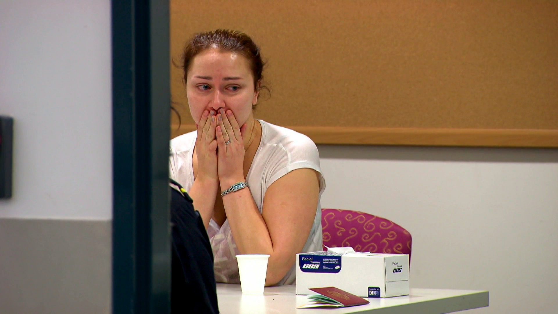 En ung estisk kvinde bliver ført ind i et forhørslokale. Her hævder hun, at hendes kuffert slet ikke tilhører hende, en undskyldning der er meget almindelig.