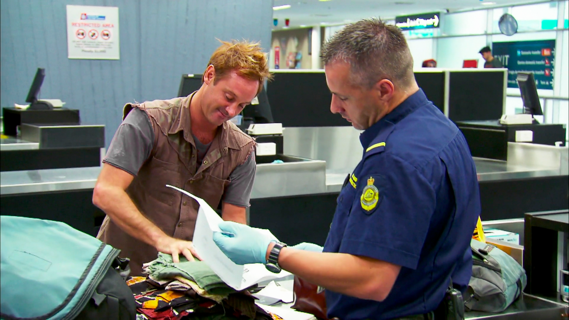 En intensiv gennemsøgning gør en passager nervøs, og en mand nægter at indrømme sin kriminelle fortid.