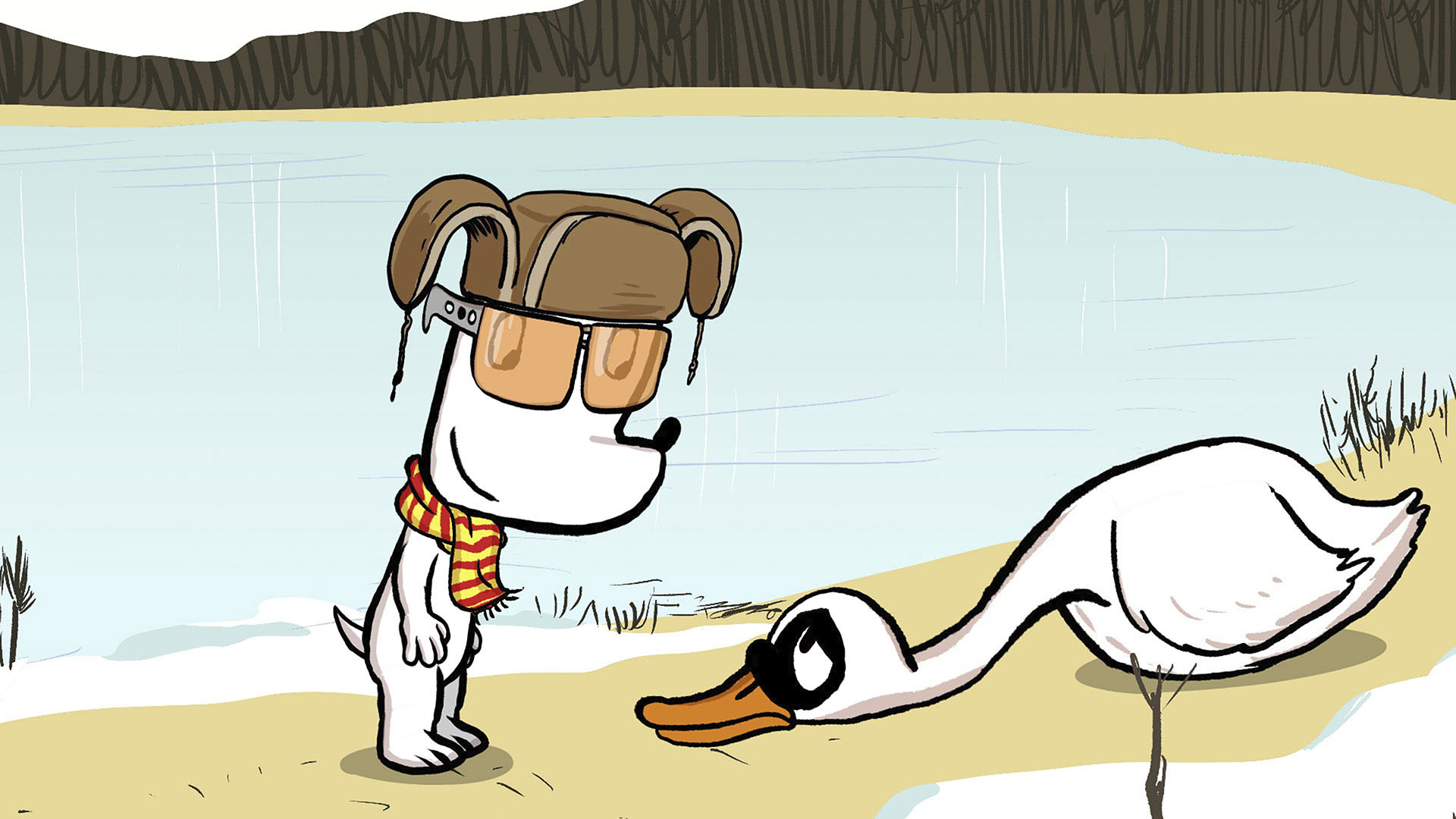 Mens han er på cykeltur ved søen, forsøger Ib at hjælpe en svane, der er for træt til at flyve