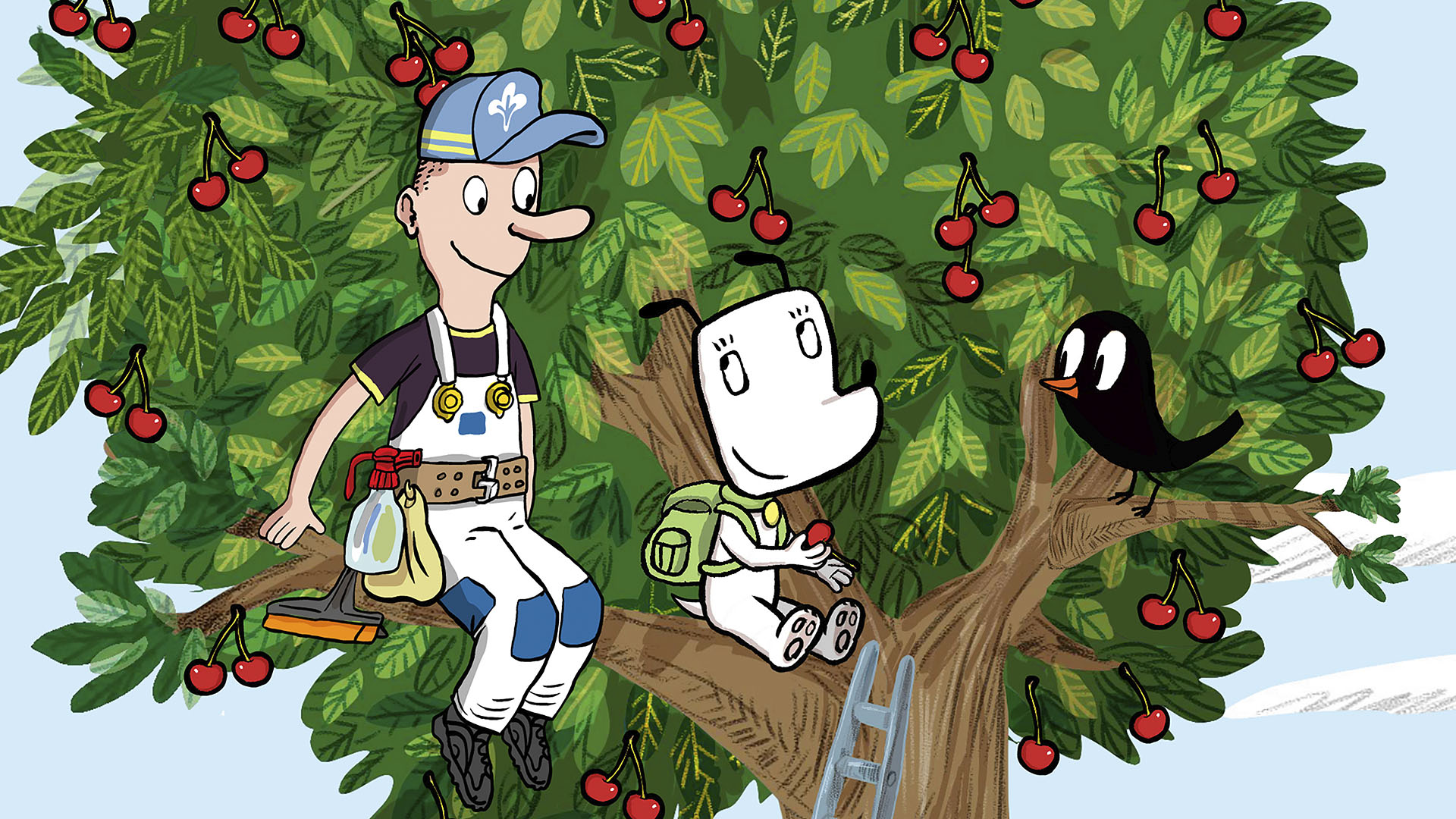 Ib er på vej til slagteren, men da han går forbi kirsebærtræet, får han øje på noget. Ib beslutter sig for at kravle op ad stigen, der står i træet, og kigge