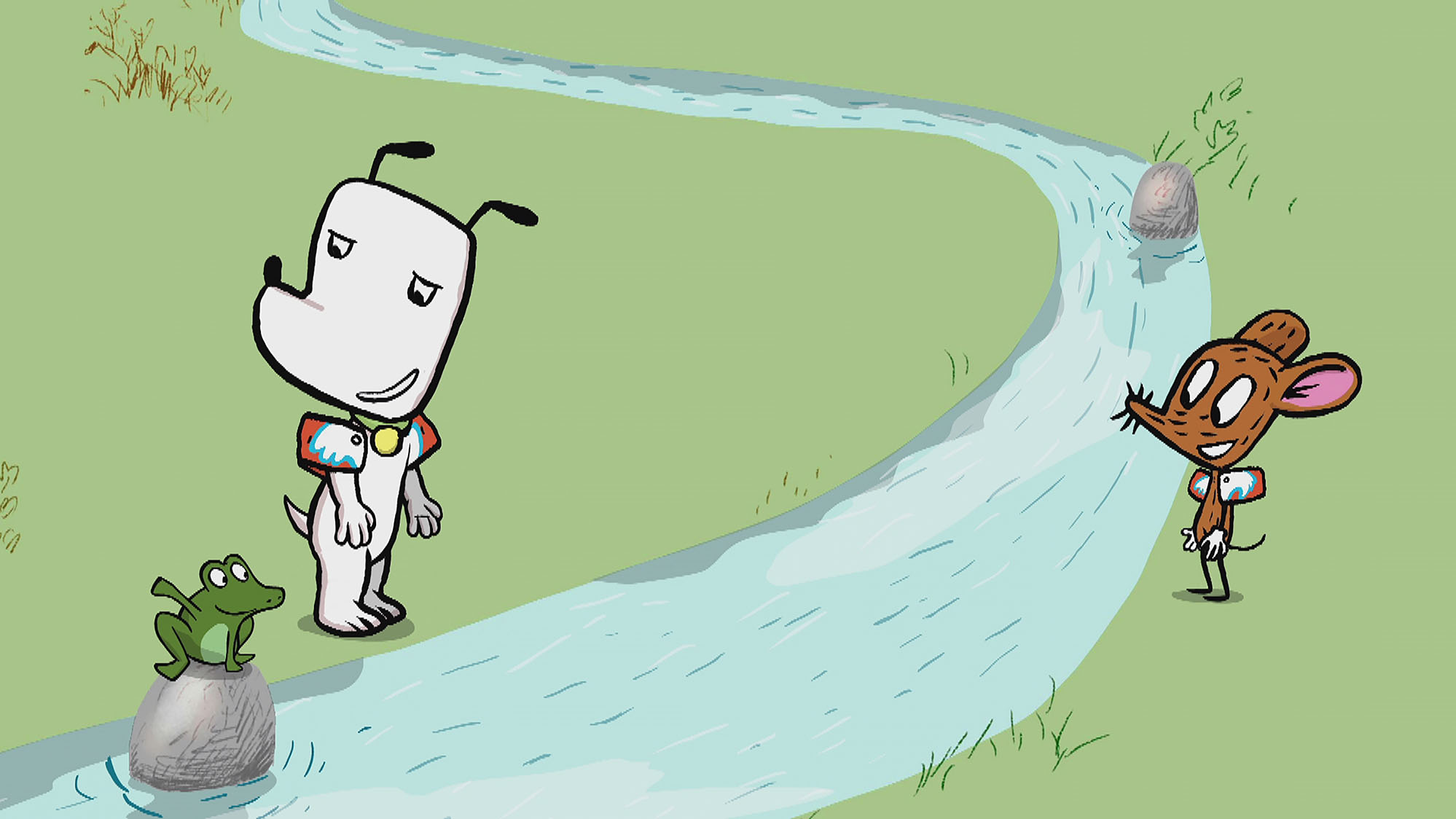 Ib er bange for vand. Musen viser Ib, hvordan han skal komme ned i den kolde å. Men kommer i tanke om, at den selv er vandskræk. Nu har den brug for Ibs hjælp