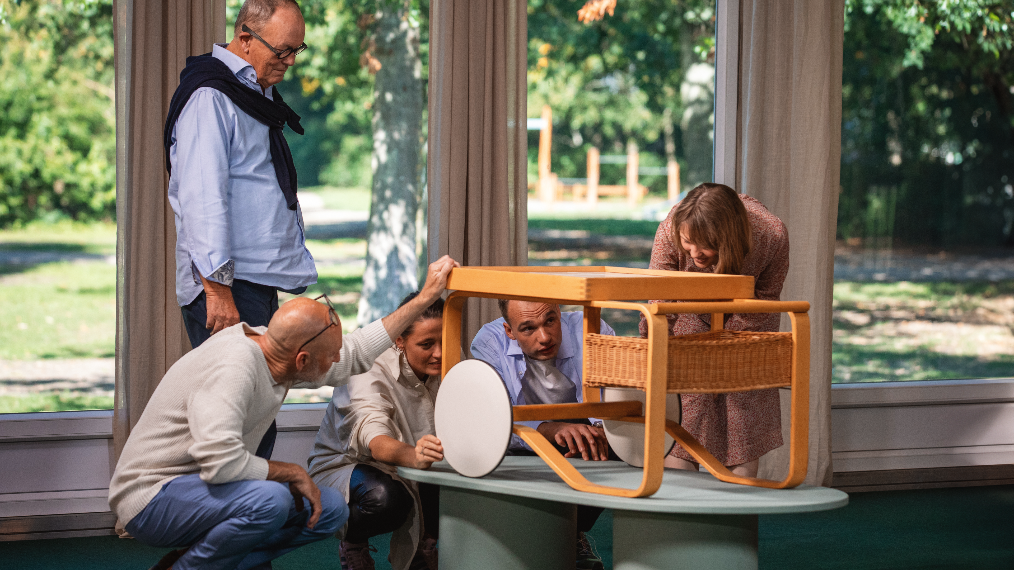 Et Olaf Rude-maleri og Kay Bojesen-figurer får køberpanelet helt ud på kanten af stolene, der denne gang er placeret i Horsens.