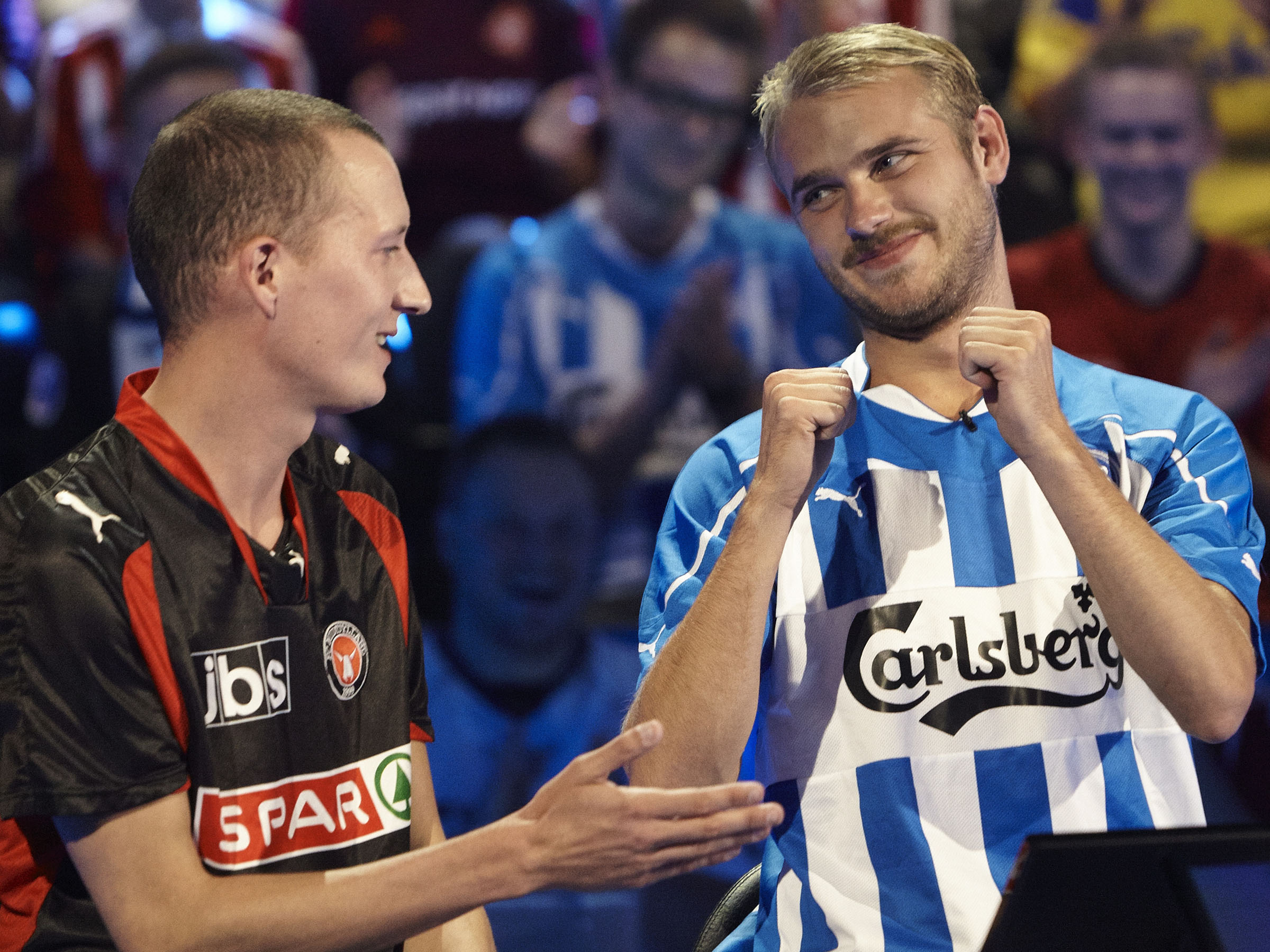 Lars og Caspers hjerter brænder for fodbold. De to fans hepper på henholdsvis AaB og Brøndby, så det er jyderne mod sjællænderne.