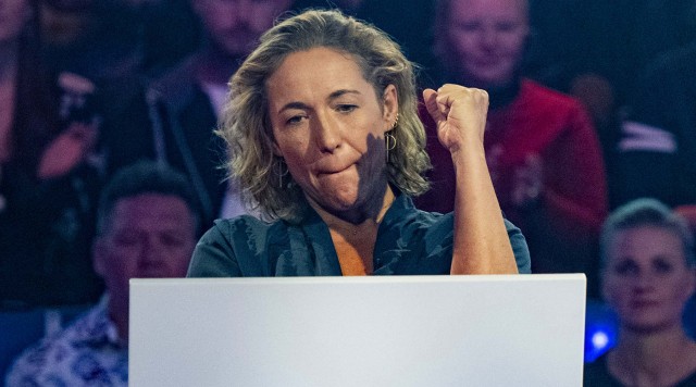 Sygeplejersken Pernille fra Risskov sidder i den varme stol. Hun har fået en god start på spillet og er ni spørgsmål fra millionen.