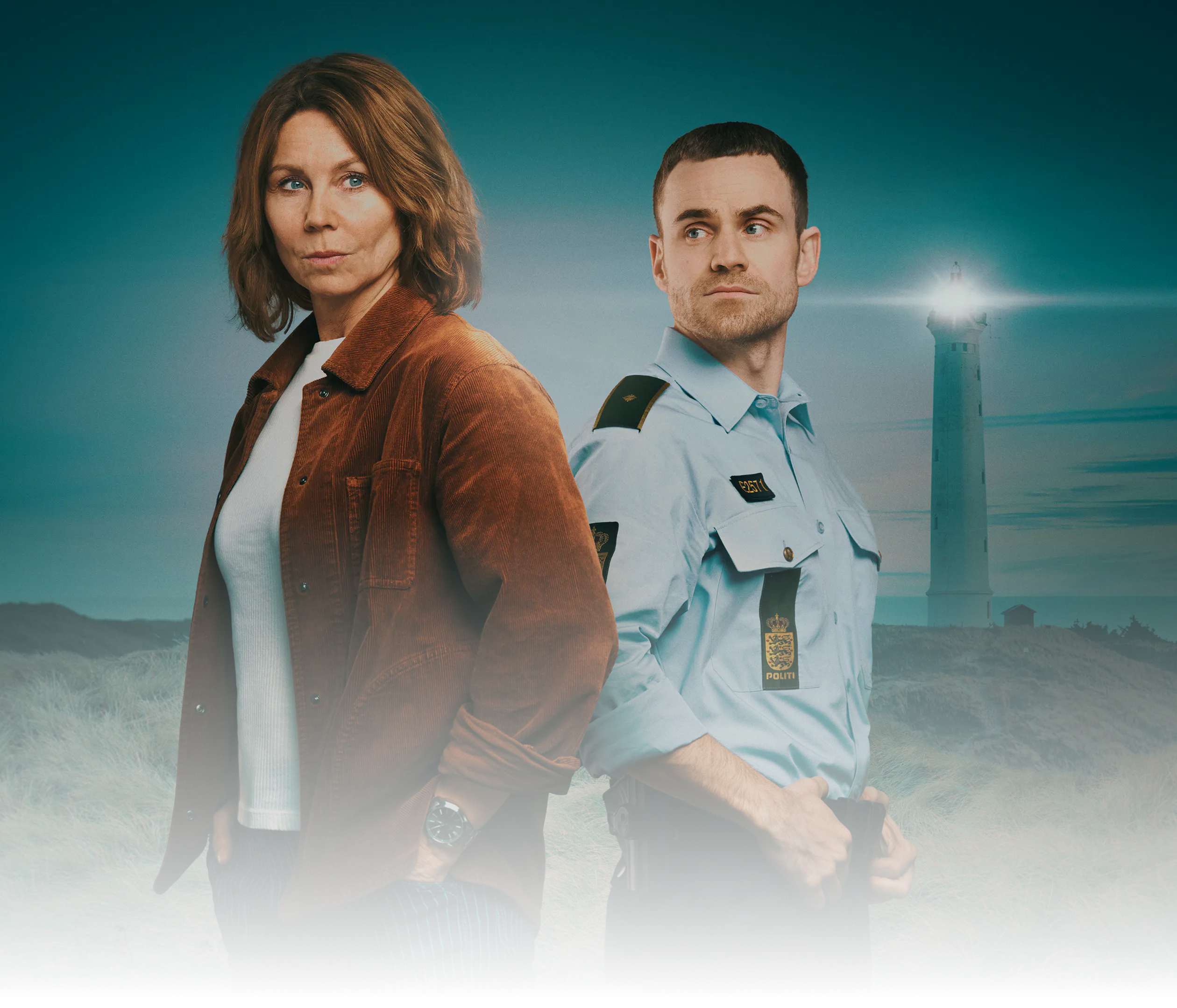 Hovedrollerne som de to betjente, Helene og Thomas, spilles af skuespillerne Marie Bach Hansen og Carsten Bjørnlund. Du har med garanti stødt på både Marie Bach Hansen og Carsten Bjørnlund i andre danske film og serier.