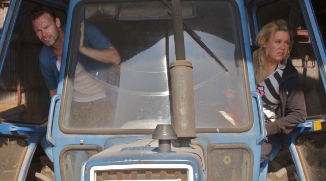 Martin og Laila har været tvunget til at overnatte i en kostald på Fyn. Næste morgen er der kun få timer til brylluppet, men langt til nærmeste togstation. .
