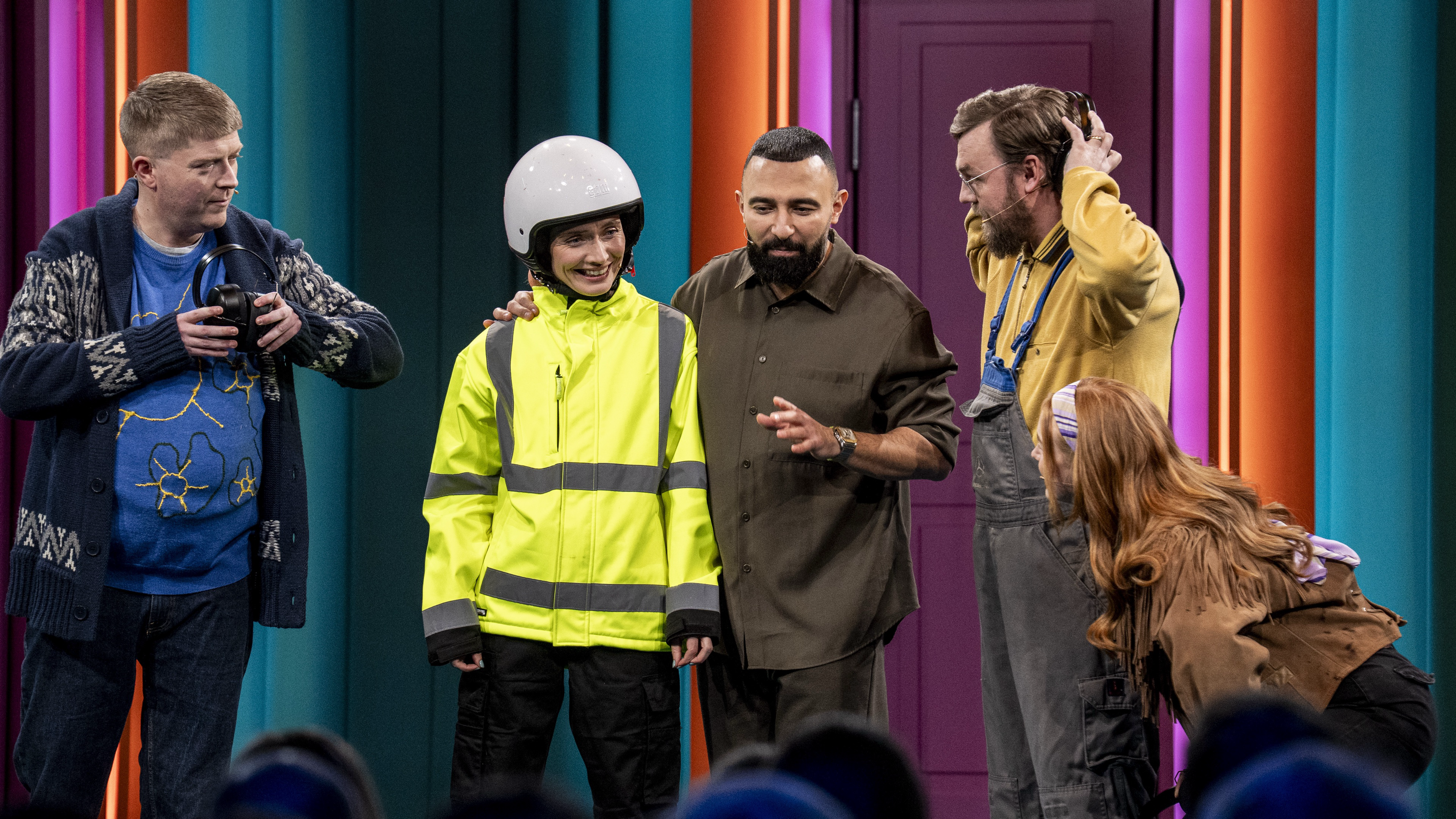 Alt kan gå galt, når vi giver kontrollen til fire sjove danskere. De aner absolut intet om, hvad der venter bag døren i studiet, eller hvilke vanvittige hverdagsdilemmaer de møder ude i virkeligheden. Det eneste, de ved, er, at deres opgave bliver at improvisere sig igennem. Heldigvis står skuespiller og komiker Hadi Ka-Koush klar til at gribe dem, hvis panikken tager over.