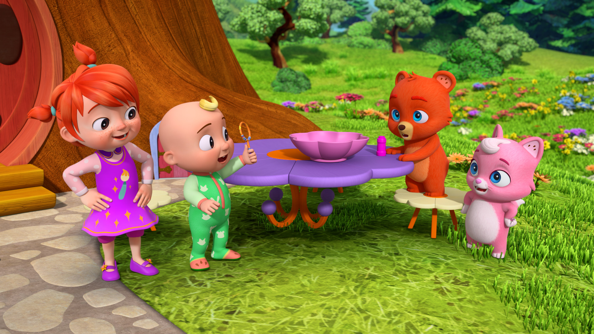 JJ, Boba, YoYo og Kiki bruger dagen på at lære at dele med hinanden