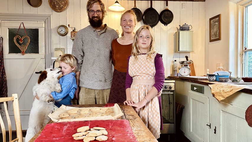 Det går vildt for sig i landkøkkenet, når Peter, Louise og børnene tager forklæderne på og bager honninghjerter og vaniljekranse til jul.