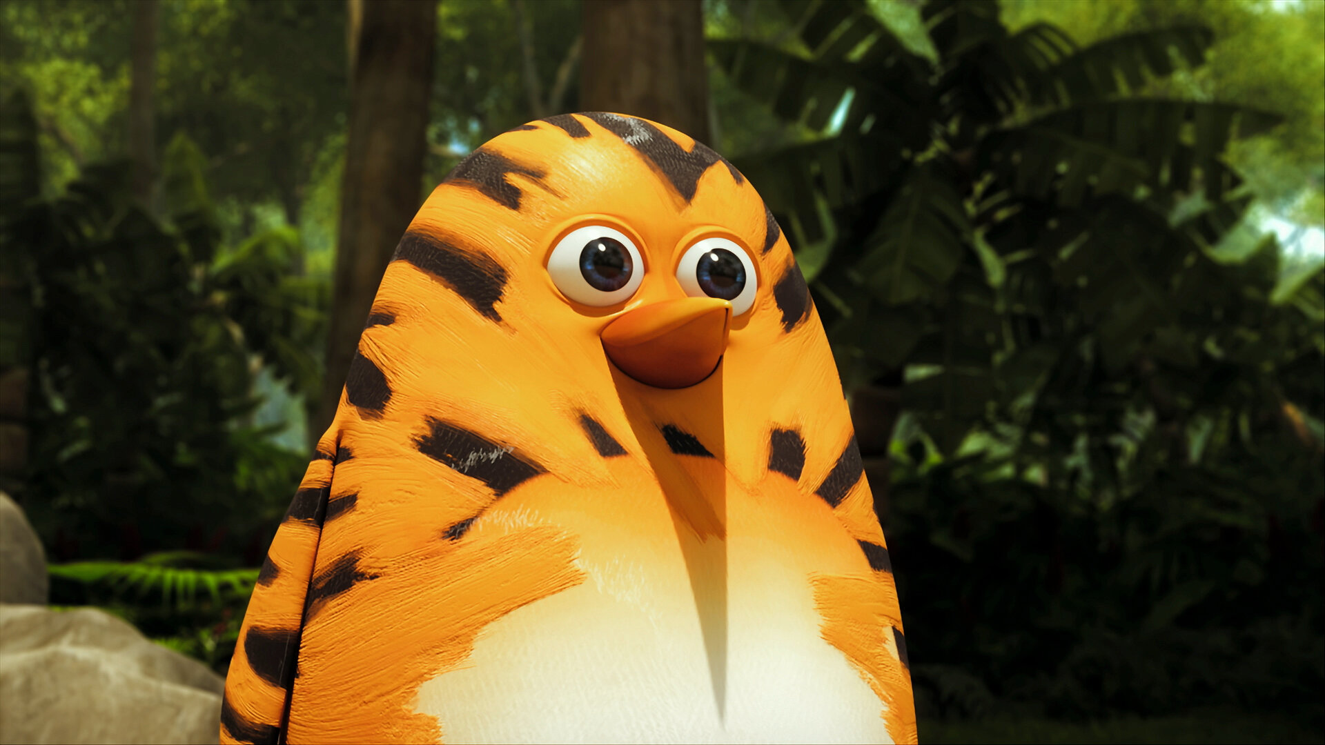 Her kommer junglebanden. Er du i problemer, må du trække i snoren, og så kommer de! Pingvinen Maurits tror, han er en tiger, der lever i junglen.
