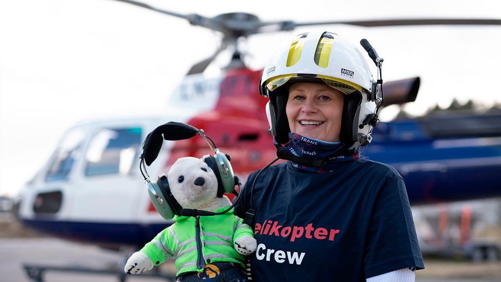 Tænk sig, nogle kæmpemaskiner kan flyve! Bamse Broom ser, hvordan en helikopter fungerer og hjælper piloten Mette med at løfte ting fra bakken.