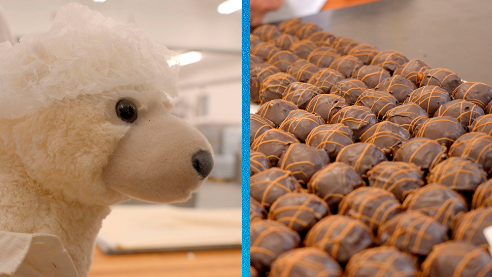 Denne gang er Bamse Broom med, når de færdige wienerbrød skal laves til romkugler. Bamse Broom ser, når kuglemaskinen laver romkugler af den klistrede dej!