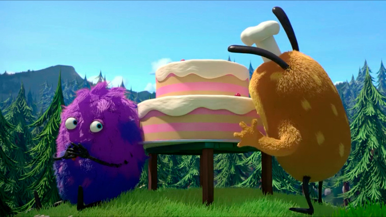 Kiwi laver en stor, smuk kage, men Strit kan ikke vente, til den er færdig, for han vil gerne spise den.