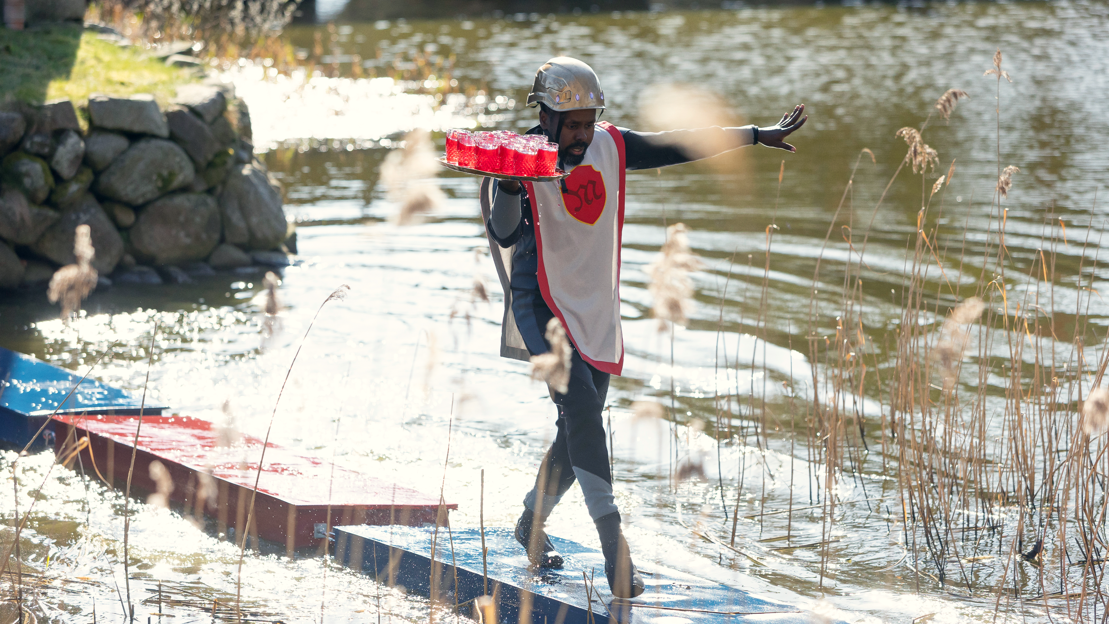 Skal en ny konge krones - eller plasker de alle i voldgraven? Hofmarskal Dybvad kalder til dåd med den ædle dyst 'Vin over voldgraven'.