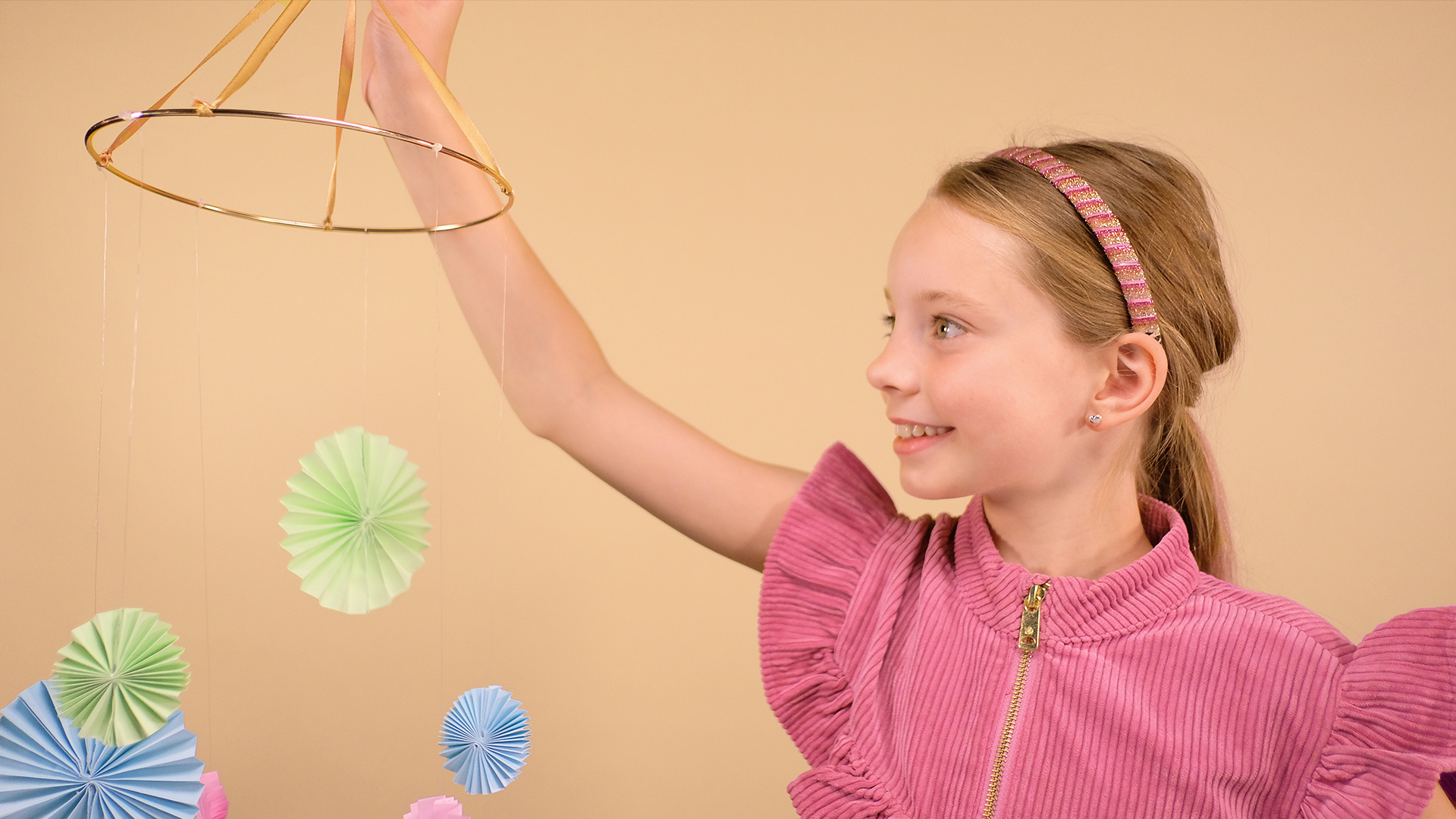 Lav en smuk og farverig uro til dit værelse! Find papir, fiskesnøre og silkebånd frem og kom i gang!.