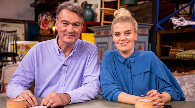 Skuespiller Jakob Fauerby havde gode ben i Vild med dans, og tv-vært Tina Müller havde det samme på fodboldbanen - men har de to også næse for antikviter?