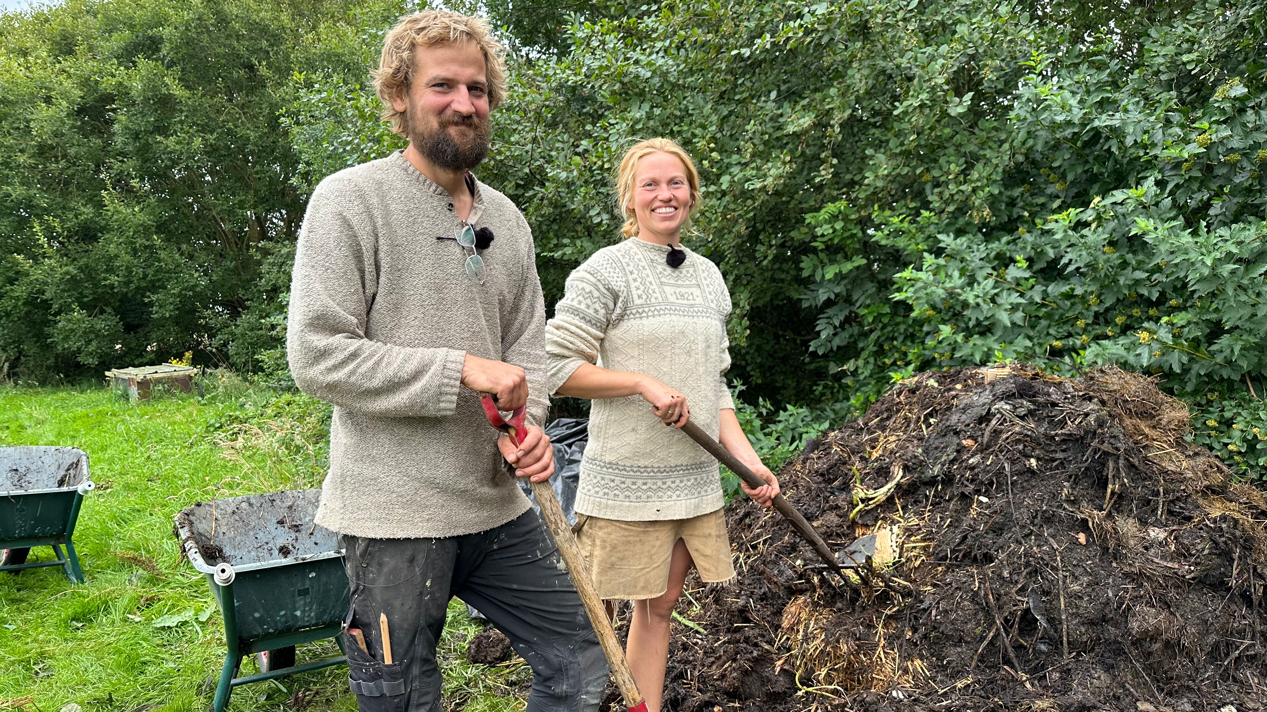 Der skal vendes kompost og drikkes kaffe, når familien Nyby holder arbejdsdag. Men komposten gemmer på små hemmeligheder, der giver udfordringer undervejs.