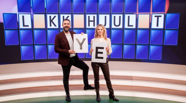 Mikkel Kryger og Kanya Natasja Rørbech er klar med en ny omgang hjernegymnastik, når de drejer 'Lykkehjulet' og udfordrer tre nye deltagere i ordgåder. .