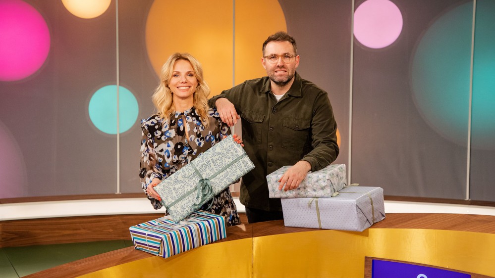 Mikkel Kryger og Kanya Natasja Rørbech er klar med en ny omgang hjernegymnastik, når de drejer 'Lykkehjulet' og udfordrer tre nye deltagere i ordgåder. .