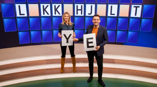 Mikkel Kryger og Kanya Natasja Rørbech er klar med en ny omgang hjernegymnastik, når de drejer 'Lykkehjulet' og udfordrer tre nye deltagere i ordgåder. .