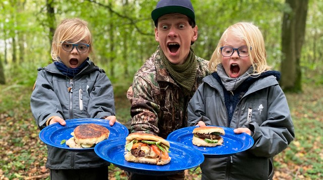 Knaser regnorme? Se med, når venneparret Eskild og Arthur danser regnormene frem fra skovbunden og spiser de store slimede orme i en burger. Hvad mon de synes?