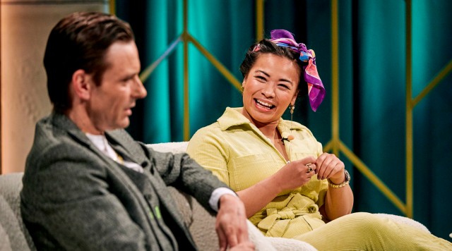 Melvin har inviteret Jada og Sofie Gråbøl ind for at høre, hvordan de to altid leverer, når de optræder. Men ingen snak uden leg, så Melvin udfordrer dem også.