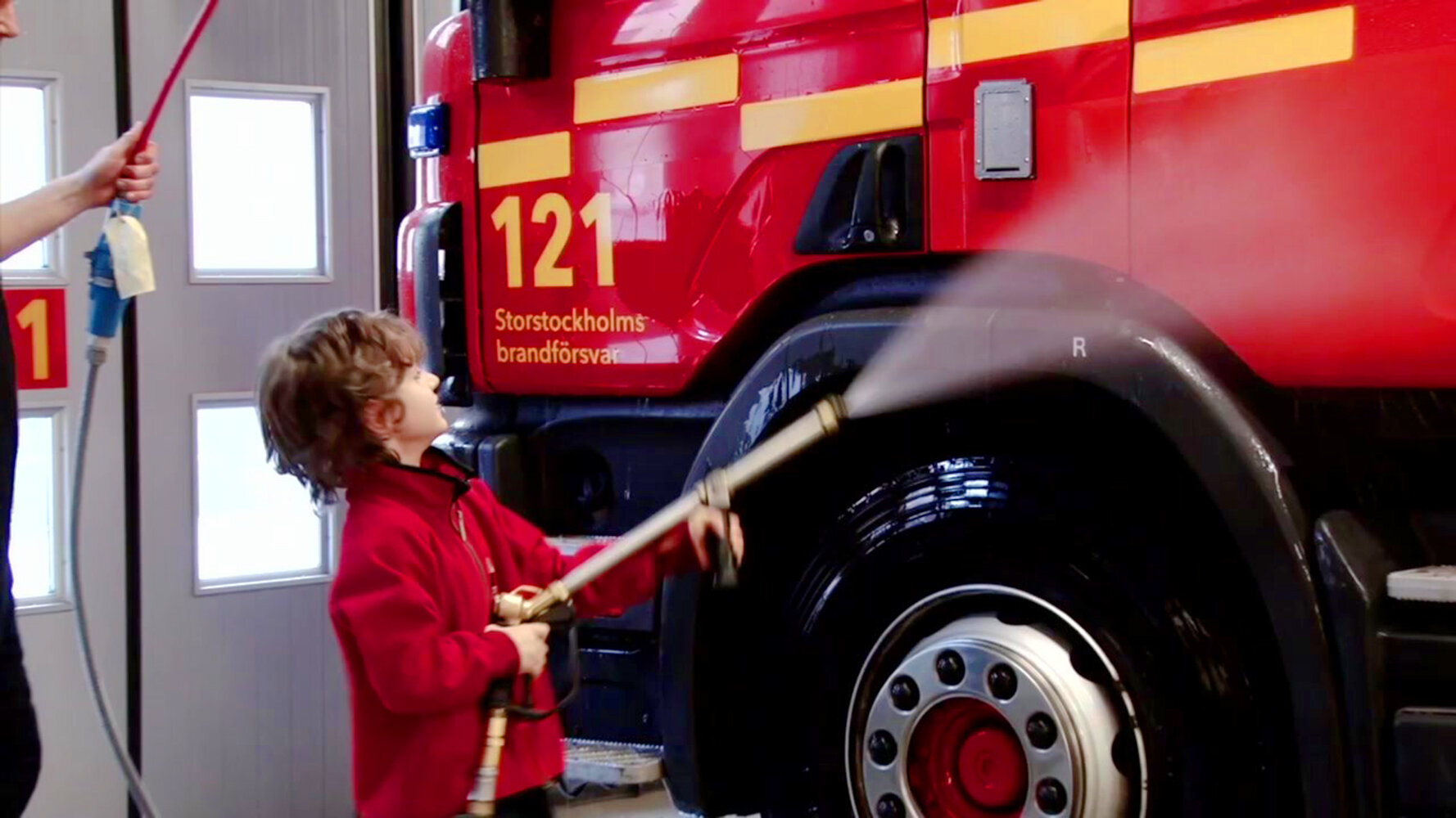 16. Lille Ludvig vasker brandbilen