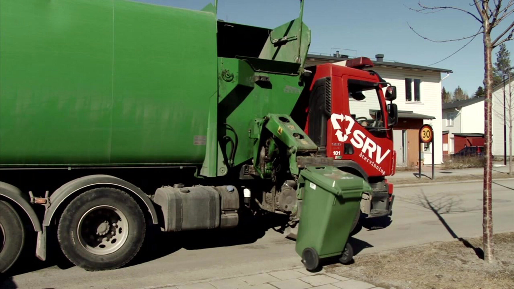 31. Stor skraldebil tømmer skraldespand
