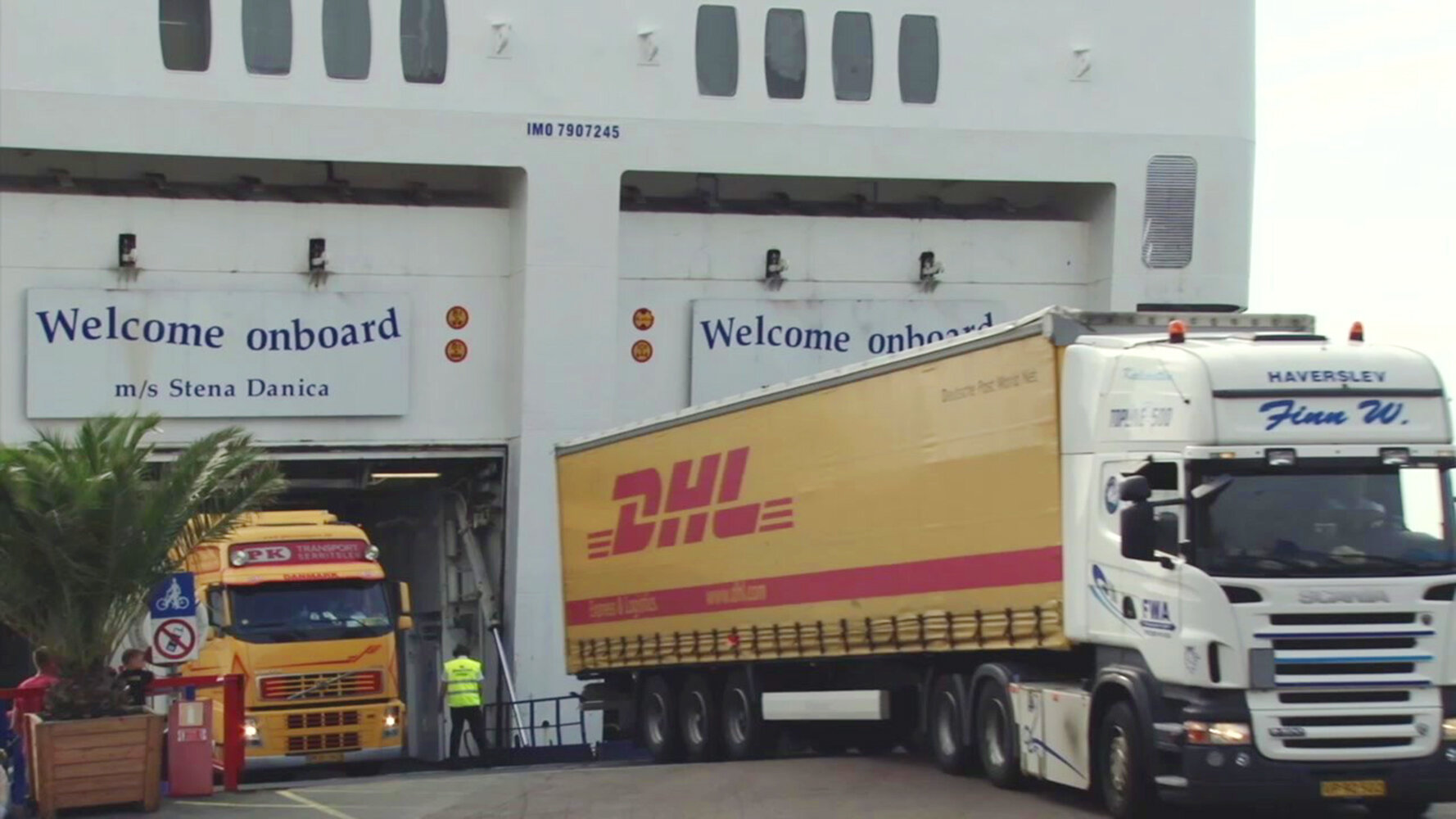 25. Små og store lastbiler kører fra borde